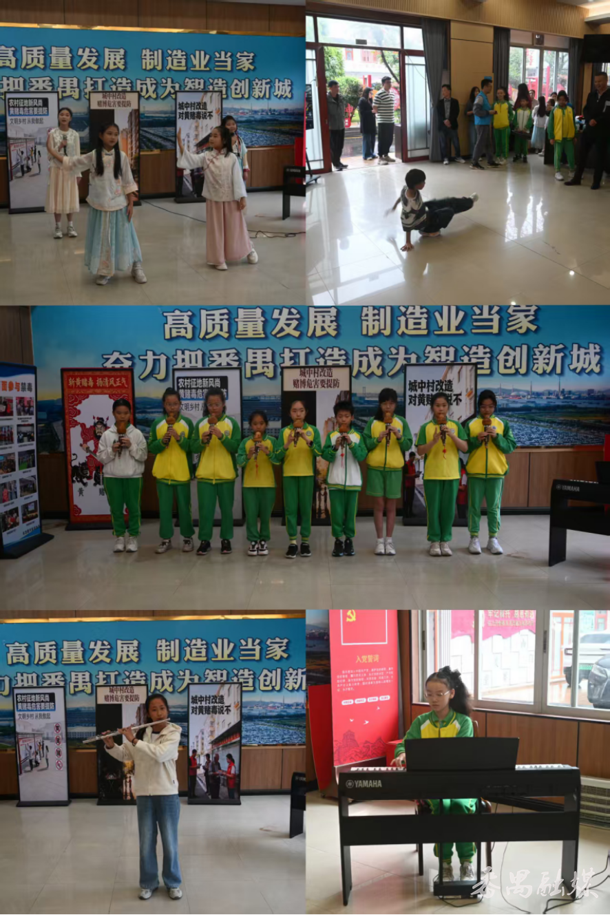 随后,“平安化龙文艺小分队” 带来禁毒主题快闪表演。街舞、电子钢琴、长笛、葫芦丝合奏等节目轮番上演,以青春活力传递拒毒防毒理念;小学粤语合唱团以乡音搭配手势舞唱响励志歌曲,将现场气氛推向高潮。